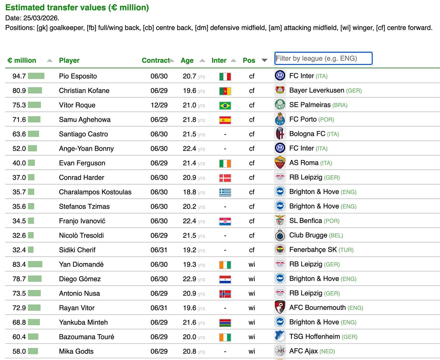CIES publiceerde een overzicht van de meest waardevolle onder-23-spelers ter wereld. Ondanks kritiek blijft het een modelmatige inschatting die clubs (ook Ajax) gebruiken, op basis van leeftijd, prestaties, contractduur en marktcontext.